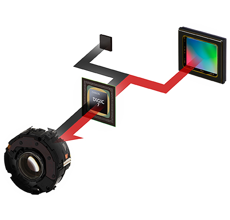 Rejestracja wysokiej jakości obrazów JPEG w trudnych warunkach słabego oświetlenia dzięki zaawansowanemu procesorowi DIGIC 7 oraz typowej dla systemów EOS wbudowanej korekcji dyfrakcji i funkcji Auto Ligthing Optimizer (Automatyczny optymalizator jasności).