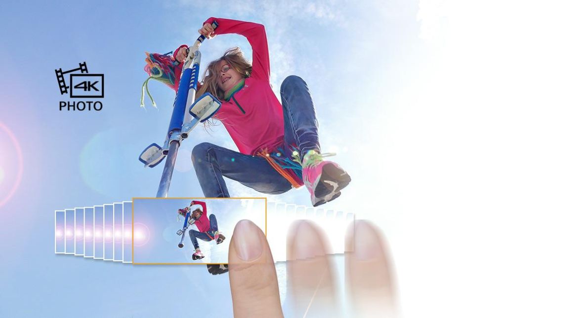 Firma Panasonic wykorzystała technologię 4K również do uzyskania bezprecedensowej dokładności zdjęć. Opracowana przez nią funkcja 4K Photo, zastosowana po raz pierwszy w aparacie podróżnym, umożliwia wyodrębnienie 8-megapikselowego kadru z filmu w rozdzielczości 4K (30 kl./s) z zadziwiającą precyzją. Funkcja ta pozwala uchwycić ulotne chwile, takie jak moment, w którym dzieci wskakują do basenu, lub kiedy delfin przebija się przez fale.